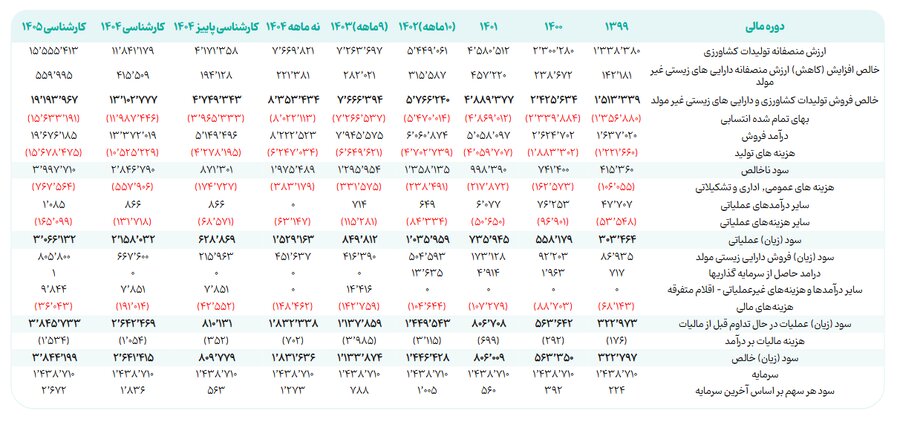 سود خالص پیشبینی شده برای سال ۱۴۰۵ برابر با ۳,۸۴۴ میلیارد ریال و سود هر سهم ۲,۶۷۲ ریال برآورد شده است. همچنین، افزایش ارزش منصفانه داراییهای زیستی غیرمولد نیز از ۴۱۵ میلیارد ریال در سال مالی قبل به ۵۵۹ میلیارد ریال خواهد رسید.